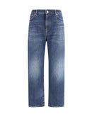 Dolce&Gabbana’s boyfriend Jeans offer a relaxed fit and casual style with a strong character. Made in the classic five-pocket style, they feature a high waist with belt loops and a zipper and button closure. The design is completed by the logo plaque on the back, an iconic detail that recalls the brand’s identity. Perfect for a casual, urban look without sacrificing Dolce&Gabbana’s signature elegance.