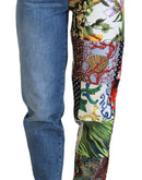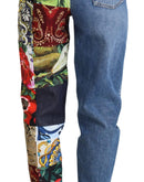 Dolce & Gabbana Blue Jacquard Majolica High Waist Jeans