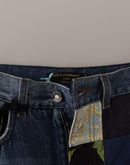 Dolce & Gabbana Blue Jeans Jacquard Majolica High Waist Pants