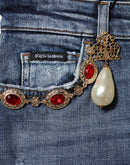 Dolce & Gabbana Blue Rhinestone Embellished Denim Jeans