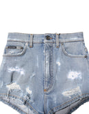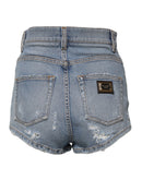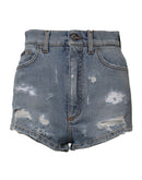 Dolce & Gabbana Blue Tattered Denim Cotton Hot Pants Shorts