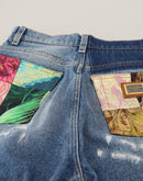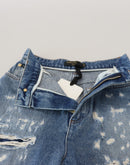 Dolce & Gabbana Blue Washed Cotton Tattered Denim Jeans