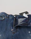 Dolce & Gabbana Blue Washed Cotton Tattered Denim Jeans