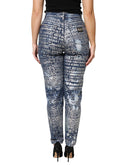 Dolce & Gabbana Blue Washed Print High Waist Denim Jeans