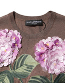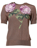 Dolce & Gabbana Brown Lily Embellished Round Neck Blouse Top