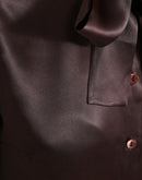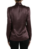 Dolce & Gabbana Brown Silk Ascot Collar Long Sleeve Blouse Top