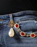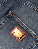 Dolce & Gabbana Dark Blue Cotton Tattered Skinny Denim Jeans