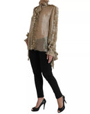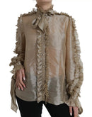 Dolce & Gabbana Gold Ascot Collar Ruffles Blouse Top