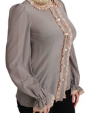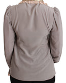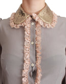 Dolce & Gabbana Gray Silk Gold Sequin Lace Blouse Shirt