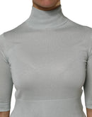 Dolce & Gabbana Light Green Silk Turtleneck 3/4 Sleeves Top