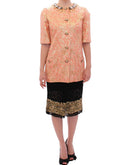Dolce & Gabbana Pink Silk Brocade Crystal Jacket Coat