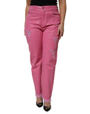 Dolce & Gabbana Pink Tattered Mid Waist Tapered Denim Jeans
