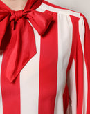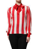 Dolce & Gabbana Red White Stripes Ascot Collar Blouse Top