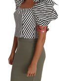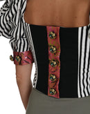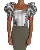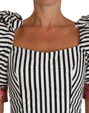 Dolce & Gabbana White Black Striped Cropped Top Puff Sleeve Shirts