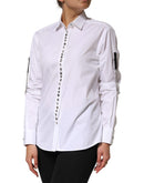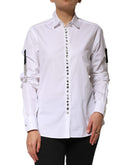 Dolce & Gabbana White Crystal Embellished Collared Shirt Top