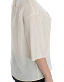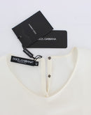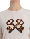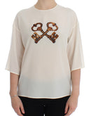Dolce & Gabbana White Sequined Key Silk Blouse T-shirt Top