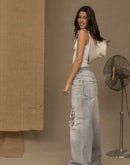Don The Fuller denim, grey color, 5-pockets design, buttons closure, brand logo on the back. Made in Italy