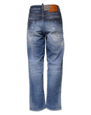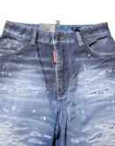 Dsquared² Blue Tattered Cotton Mid Waist Straight Denim Jeans
