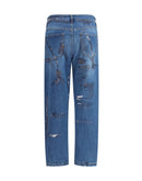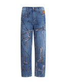 Ella’s Carota Jeans feature a slim five-pocket fit and a front zip and button closure. Belt loops at the waist add practicality, while all-over paint splatter details give the style a bold, contemporary edge.