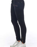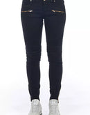 Unleash your inner rebel with these Frankie Morello biker jeans—a bold, design-forward addition to your wardrobe. Expertly crafted in Italy, this pair marries a chic worn wash with the unexpected edge of a lower waist and practical multipockets. Perfect for the modern fashionista who takes her denim seriously, these jeans harness the power of stretch cotton for a superb fit that moves with you. A front zip and button closure provide both convenience and style. Elevate your denim game with Frankie Morello’s impeccably tailored jeans.