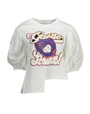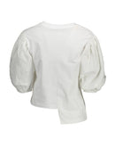 3/4 balloon sleeve t-shirt, round neck, asymmetrical bottom, print, logo