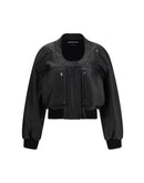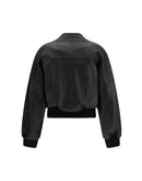 The Tore Bomber by Jacquemus, crafted from supple hammered lamb leather, merges craftsmanship with contemporary design for a piece of distinctive character. The concealed front closure with zip and snap buttons, paired with a round neckline featuring a covered snap, lends understated sophistication. Rounded sleeves and a slightly cropped cut enhance the oversized silhouette, while details such as the zip gusset and slanted pockets, embossed Jacquemus logo at the back, and ribbed hem and cuffs highlight the brand’s meticulous attention to detail. A bold and refined jacket that perfectly embodies the modern elegance of Jacquemus.