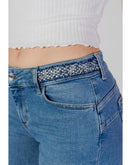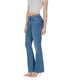 The Liu-Jo B.UP BEAT REG.W.BRAID UA5245D4448 women’s jeans feature a distinctive flared and bootcut fit, designed to enhance your silhouette and bring a touch of ’70s style to your wardrobe. Made from 98% cotton and 2% elastane/lycra, they offer both comfort and flexibility, hugging the hips and gradually widening from the knee down. These jeans are finished with a braided waistband detail, zip and button closure, five-pocket construction, and contrasting stitching for added style. Perfect for casual chic outfits, they pair beautifully with both heels and sneakers, making them an ideal choice for those seeking quality and fashionable design.