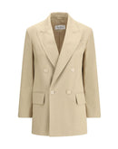 The Olimpia stretch canvas Jacket reimagines the double-breasted blazer with a relaxed yet contemporary elegance. Its straight cut and slightly dropped shoulders balance tailored precision with modern comfort, while the peak lapels and buttoned cuffs highlight its timeless character. Featuring a chest pocket, flap pockets, and a double back vent, it is finished with refined details such as sartorial topstitching and a Monogram jacquard lining. A versatile and sophisticated piece, designed to effortlessly elevate both formal and everyday looks.