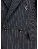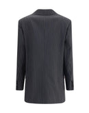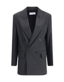 Max Mara’s Mattia Blazer is a tailored cut embellished with a striped pattern that enhances its elegance. It features peaked lapels, double-breasted button closure and two welt pockets with flap on the front. A refined and structured model, perfect for formal or sophisticated looks.