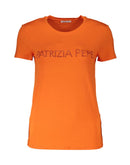 Elevate your wardrobe with the bold finesse of Patrizia Pepe. This short sleeve t-shirt exudes chic charm with its crew neck design, dazzling rhinestone embellishments, and the luxurious touch of the brand’s emblem. Crafted from a sumptuous blend of elastane and viscose, this piece not only makes a trendy statement but also promises a figure-flattering fit. Whether you’re out for a casual meet-up or an evening soiree, this vibrant orange top ensures you stand out in the most fashionable way.