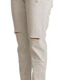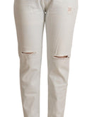 PINKO White Cotton Distressed Mid Waist Skinny Denim Jeans