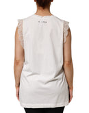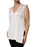 PINKO White Silk Blend Lace Trim Sleeveless V-Neck Women’s Top
