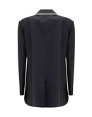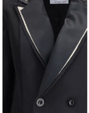 The Wool Blazer by Sacai is a sophisticated piece that blends classic elegance and stylistic experimentation. Made of fine wool, it features a double-breasted cut with front buttons that emphasize its tailored structure. On the front, two welt pockets with flaps add functionality and symmetry to the design. Particularly distinctive is the double layer of peaked lapels, an iconic element that gives the blazer a strong visual identity and contemporary appeal. A perfect garment for those seeking sophistication with an innovative twist.