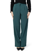 The Vila Clothes VIMARNAL RW TAILORED women’s bootcut and flared trousers combine elegance and comfort in a tailored design. The slim silhouette gently flares out at the hem, creating a flattering bell-bottom effect. Crafted from an innovative blend of 50% recycled polyester, 43% polyester, and 7% elastane, these trousers offer a comfortable fit and slight stretch that moves with you. Featuring a front button and zip closure, side pockets, and minimalist details, they are perfect for both office looks and casual chic occasions. Ideal for those seeking style and sustainability in one garment.