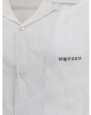 Alexander McQueen’s thin striped Shirt reinterprets the classic Hawaiian pattern with elegance and attention to detail. Featuring a front button closure and a patch pocket on the chest, it is embellished with the embroidered logo that signs the garment with discreet sophistication. A perfect blend of relaxed fit and sophistication.