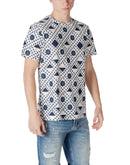 The Antony Morato men’s t-shirt REGULAR FIT WITH LOGOED METAL BADGE MMKS02515-FA140286 is a must-have and versatile piece for the modern wardrobe. Made from 100% pure cotton, it ensures comfort and breathability all day long. The short-sleeved design features an all-over geometric print with contemporary patterns for a unique style touch. The iconic detail is the logoed metal badge on the chest, a symbol of authenticity and sophistication. Ideal for casual occasions or leisure time, this t-shirt pairs easily with jeans or sporty trousers for a fresh, up-to-date look.