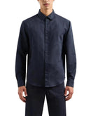 The Armani Exchange men’s shirt model 3DZCL4 ZN3JZ is a long-sleeved garment that combines elegance and practicality. Made from a blend of 65% cotton and 35% polyester, it ensures comfort and durability throughout the day. The classic cut with a pointed collar and front button closure provides a refined and versatile style, perfect for both formal occasions and a sophisticated casual look. The fabric features a subtle tone-on-tone pattern that adds a distinctive and modern touch to the design. Ideal to pair with dress pants or jeans, this shirt is the perfect choice for those seeking Armani Exchange quality and style.