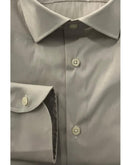 Elevate your wardrobe with the impeccable craftsmanship of Baldinini Trend. This Slim Fit Shirt is the epitome of Italian sophistication, featuring a sleek French collar and a smooth front button closure that adds a polished touch to any ensemble. Tailored impeccably to showcase a sharp silhouette, it’s the buttoned cuffs that ensure a perfect fit at the wrists. Ideal for the modern man who values both style and comfort, this beige shirt is a testament to Baldinini Trend’s commitment to excellence in fashion.