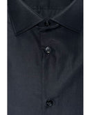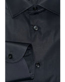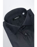 Embrace Italian elegance with Baldinini Trend’s impeccably tailored slim fit shirt. Featuring a sophisticated French collar and sharp front button closure, this shirt is the epitome of sleek, contemporary style. Crafted from premium cotton, it guarantees comfort and durability, while the buttoned cuffs add a classic touch. A timeless piece for the fashion-forward man, it brings a bold yet refined statement to any ensemble in a versatile black hue.