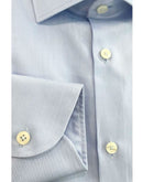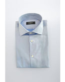 Indulge in the epitome of Italian sophistication with this exquisite Baldinini Trend shirt. Its slim fit silhouette and French collar exude elegant charm, making it a must-have for the fashion-forward gentleman. Expertly tailored with a sleek front button closure and meticulous buttoned cuffs, each detail is crafted for a luxurious experience. Adorned in a serene light blue, this shirt is quintessential for those who command attention through understated style.
