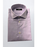 Elevate your wardrobe with a touch of Italian sophistication with this Baldinini Trend shirt. Crafted to perfection with a slim fit cut, this piece features a sharp French collar and precise front button closure. The cuffs are delicately secured with buttons, offering a refined detail. Tailored from premium cotton for ultimate comfort and in a striking purple hue, it’s a bold statement for trendsetters looking to make an impact.
