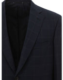 Brioni ‘Ravello’ Check Single-Breasted Jacket. Blue wool check fabric, front closure with two buttons, two front pockets with flaps and pocket on the side, classic peak collar, two vents on the back. Internal lining, classic line with regular fit. Internal SKU: 24JUN101. Composition: 100% Wool-Internal Sku:24GIU101