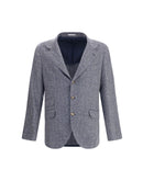 Brunello Cucinelli’s Herringbone patterned Blazer features classic lapels and a front button closure. Complete with three welt flap pockets, a welt chest pocket and two side slits, it combines elegance and functionality in a sophisticated and versatile garment.