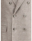 Brunello Cucinelli’s linen Blazer expresses the brand’s light and sophisticated elegance. Featuring a peaked lapel and a double-breasted closure with embossed buttons, this blazer offers an impeccably refined silhouette. It features two flap welt pockets on the front, a slit pocket and two slits on the back for a comfortable and modern fit. A perfect garment for formal and refined looks that enhance the appeal of linen.