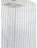 Brunello Cucinelli’s striped Shirt is an essential piece with a refined style, featuring a classic collar and a front button closure. The striped pattern adds an elegant and timeless touch.