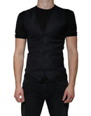 Dolce & Gabbana Black Leather Waistcoat Dress Formal Vest