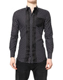 Dolce & Gabbana Black Polka Dot Long Sleeves Gold Formal Shirt