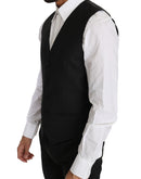 Dolce & Gabbana Black Solid Wool Silk Waistcoat Vest