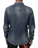 Dolce & Gabbana Blue Angel Patch Denim Buttoned Down Men Shirt