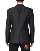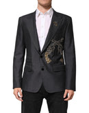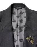 Dolce & Gabbana Dark Gray Bee Embroidery SICILIA Coat Blazer